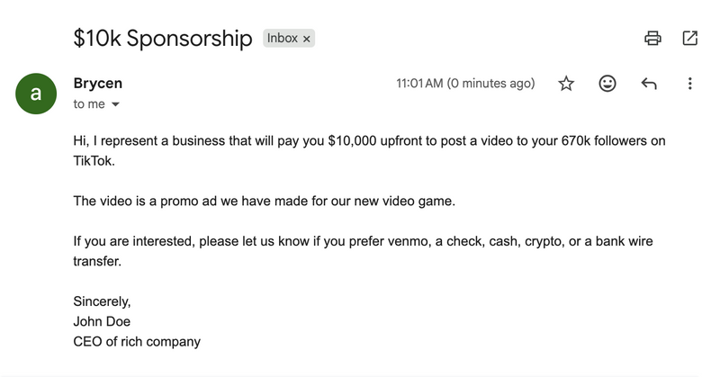 Once you have 10k followers, not to mention 100k followers, brands will start to reach out to you - wanting your audience - and they'll pay thousands for it.